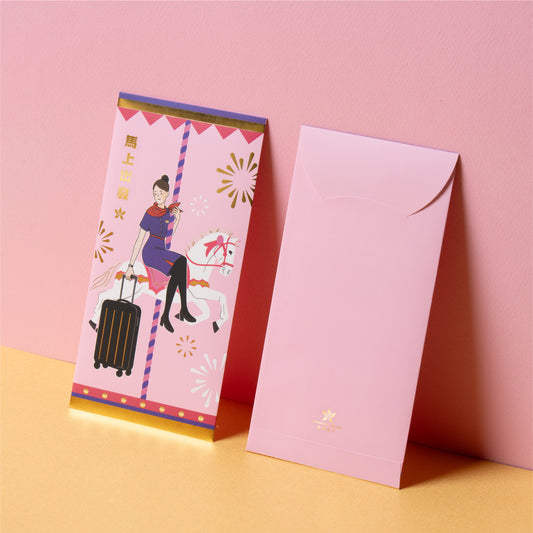 This year, Hong Kong Airlines’ red packets are inspired by Hong Kong’s unique blend of Eastern and Western cultures, paired with stylish leather red packet holders. The design features a "Merry Go Round" and professional flight crew, symbolizing the auspicious meaning of continuous growth and prosperity—like a wheel turning endlessly, bringing good luck without pause. Hong Kong Airlines looks forward to welcoming the hopeful Year of the Horse with you, and wishes you abundant wealth, success, and a swift journey ahead!