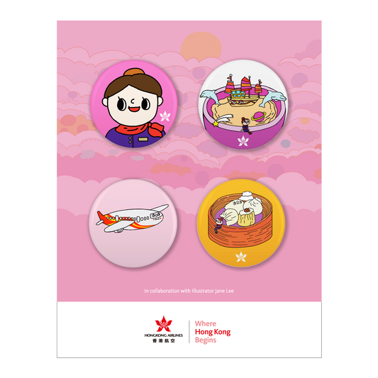 Illustrator Jane Lee x Hong Kong Airlines Button Pin Set
