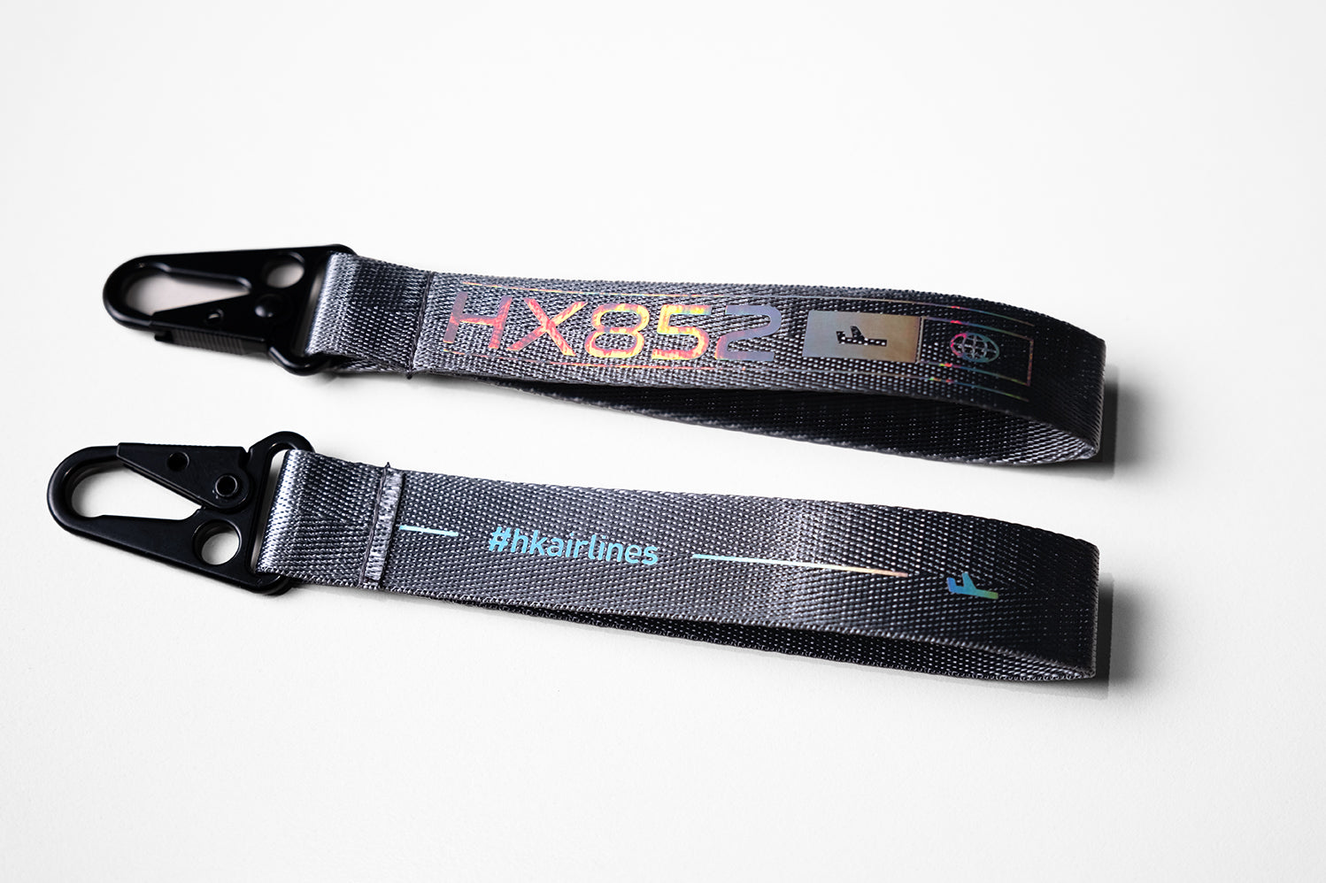 This webbing key chain features a polished surface, adding a sleek and refined look. It includes the Hong Kong area code 852 along with Hong Kong Airlines' airline code HX, symbolizing a strong connection to the city and the airline's identity. Perfect for daily use or as a meaningful keepsake, it combines style with significance.